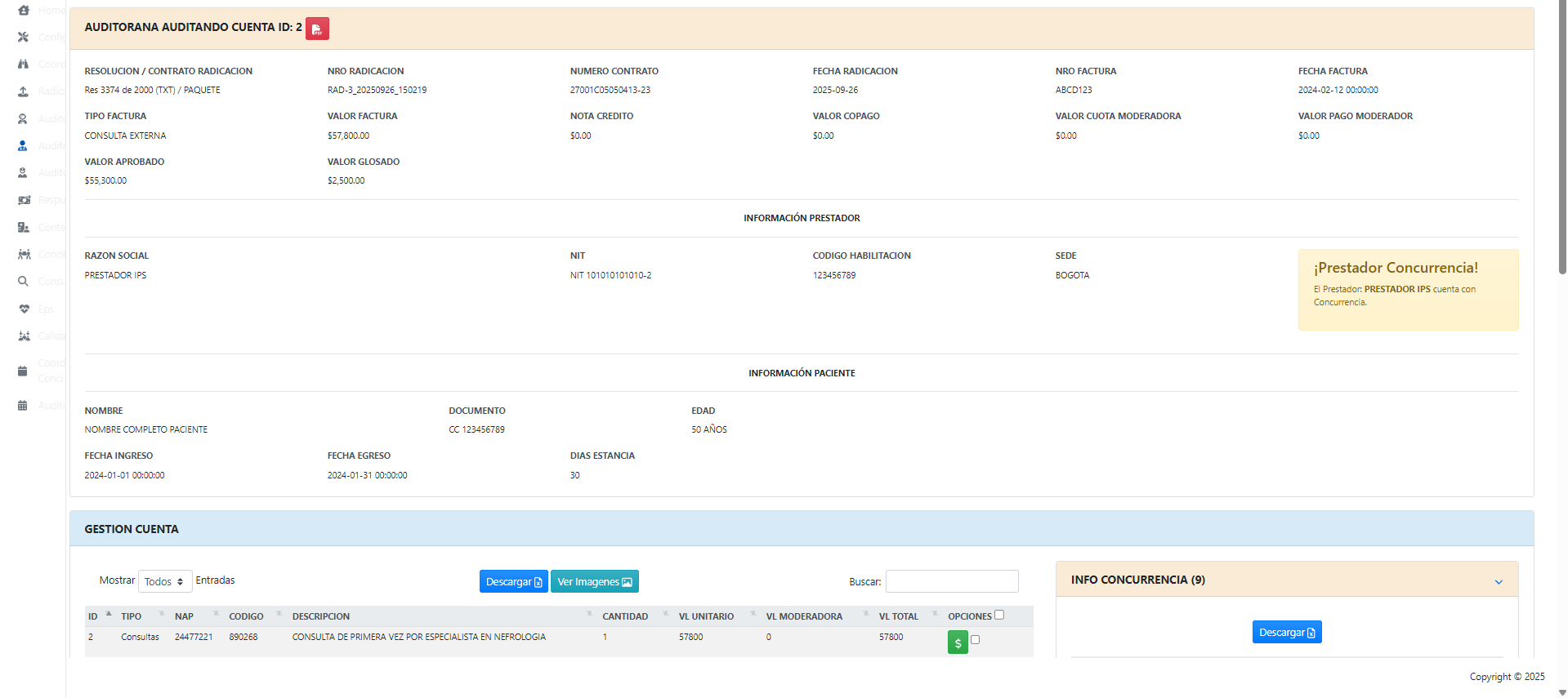 Modelo de marca blanca diseñado para la gestión avanzada de cuentas médicas. Incluye módulos especializados para recepción, radicación de cuentas y RIPS, validación automatizada de datos, y completitud de información.